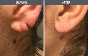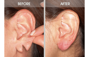 When earlobe surgery is performed by a qualified, experienced surgeon, complications are infrequent and usually minor. Nevertheless, as with any surgical procedure, there are risks associated with torn earlobe repair, including the risk of infection. Such infections would, if they occur, usually be treated with antibiotics. Rarely if ever is another surgery required to drain the infected area.